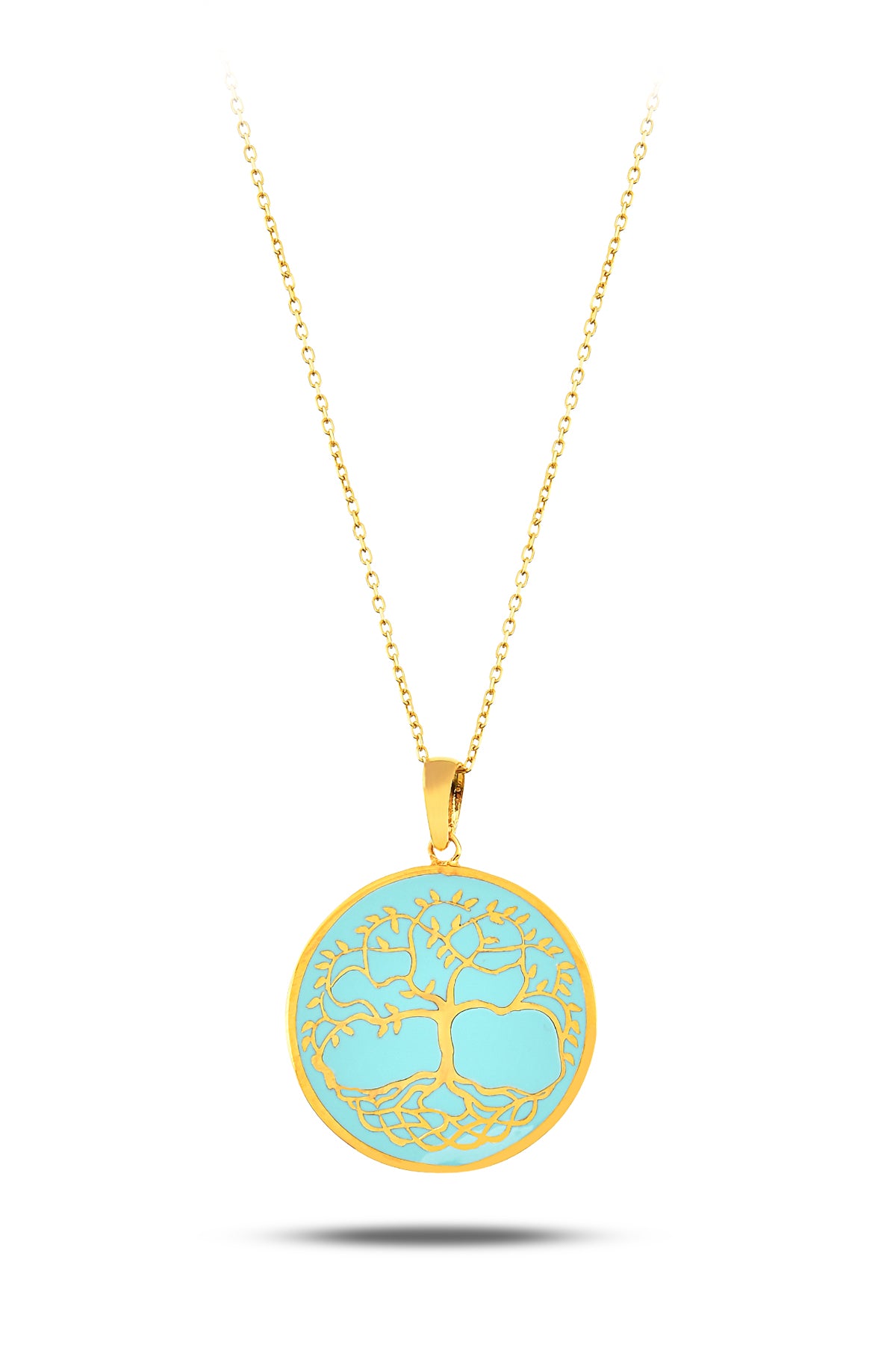 925 Ayar Gümüş 18K Altın Kaplama Yaşam Ağacı Kolye – Turkuaz Mine, El Yapımı